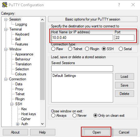 Para establecer la configuración usaremos el cliente SSH PuTTY