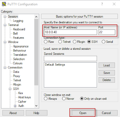 | Figura 3: Putty - Conectarse al equipo servidor SSH. |
