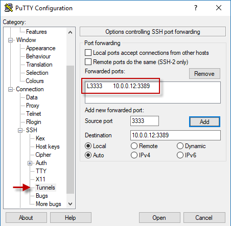Crear un túnel SSH con PuTTY para Escritorio remoto (RDP) (local port forwarding)